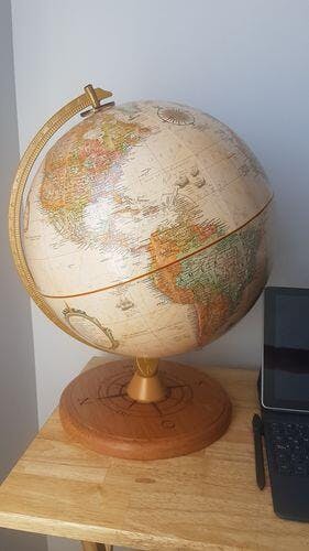 El globo terraqueo hermoso. La base de madera hace la diferencia. El color sepia queda bellísimo.