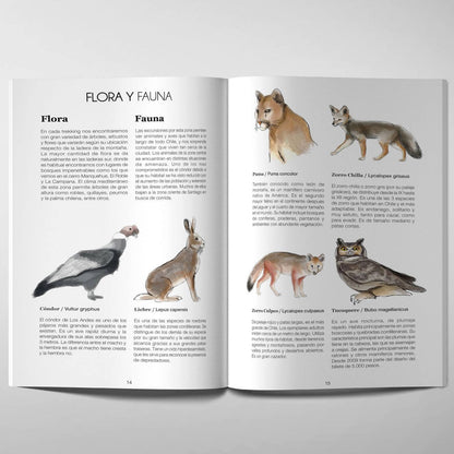 - Incluye alrededores de Santiago, flora y fauna de la zona central, mapas y fotografías de cada ruta.